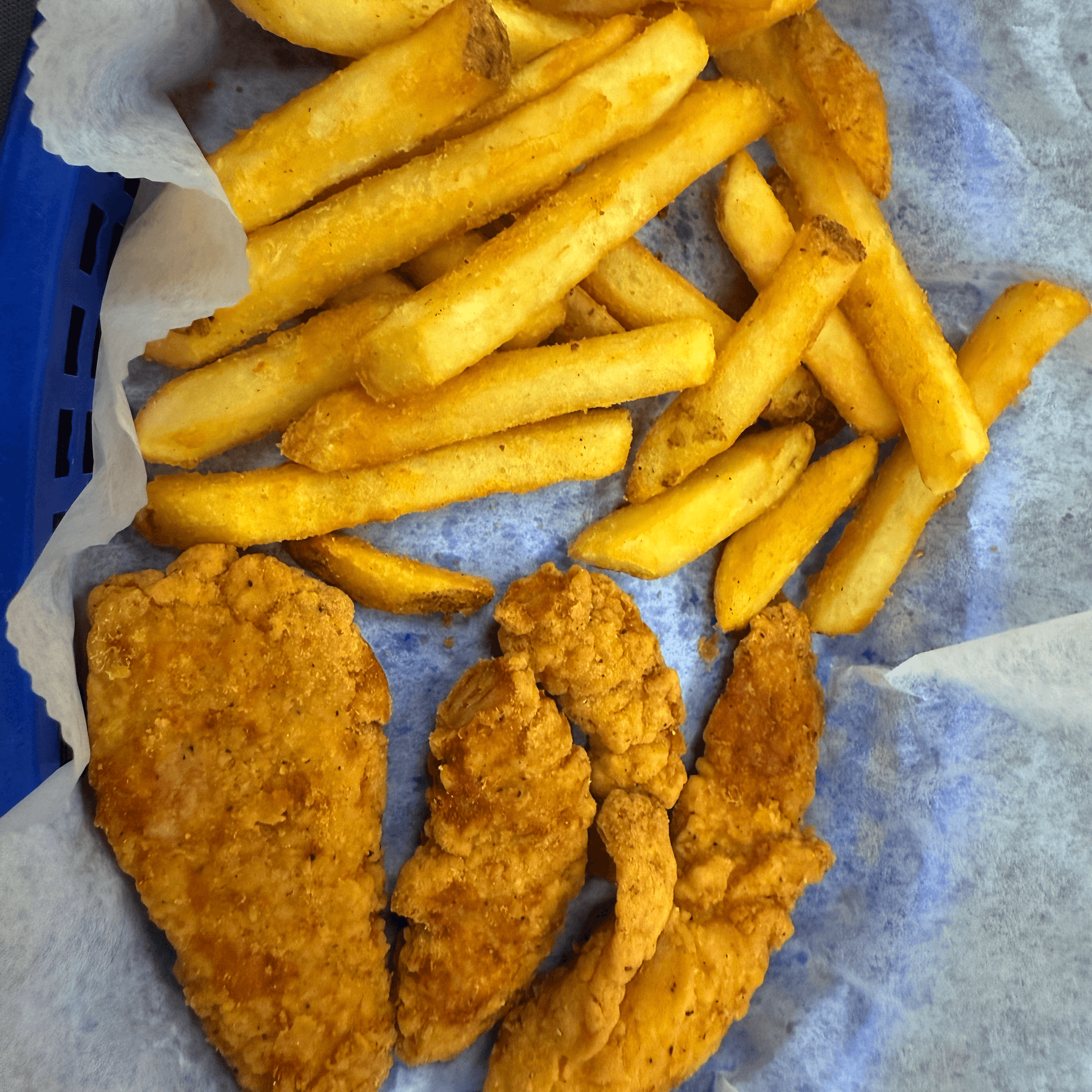 Stuffed flour tortilla with grilled chicken or steak, Spanish rice, refried beans, lettuce, sour cream, and pico de gallo. Served with French fries